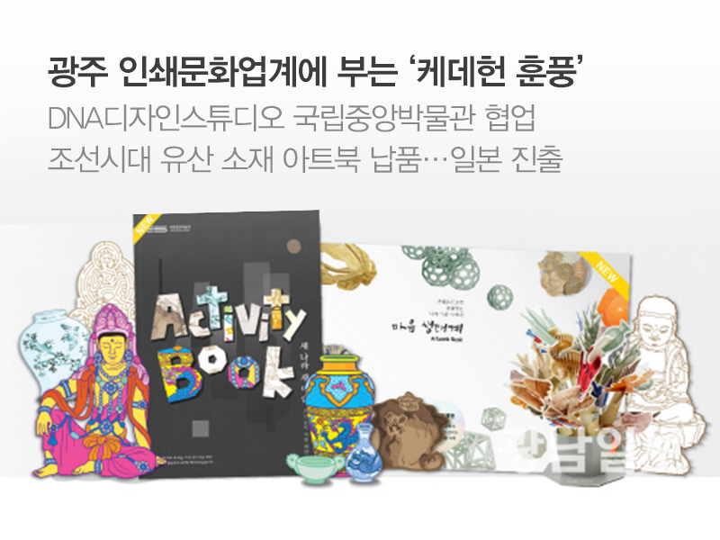 ▲광주인쇄소공인특화지원센터 전시홍보관의 다양한 인쇄문화상품 ▲DNA디자인스튜디오와 국립중앙박물관과 협업으로 개발 제작된 아트북 세계적으로 인기인 ‘케이팝 데몬 헌터스(케데헌)’ 열풍 등에 힘입어 광주지역 인쇄문화상품들도 주목받고 있다. 24일 광주디자인진흥원 등에 따르면 페이퍼토이, 스티커 컬러링북 등을 꾸준히 개발해 온 DNA디자인스튜디오(대표 안지은)는 최근 국립중앙박물관과 협업으로 조선시대 미술작품, 유산을 아트북으로 제작, 1차 물량 1000권을 납품했다. 이번에 선보인 인쇄컬래버 상품은 조선 중기 미술작품을 체험할 수 있는 ‘새나라 새미술 액티비티 북’과 중앙박물관이 소장한 유물을 페이퍼 오브제로 만들어볼 수 있는 체험형 아트북이다. 국립중앙박물관이 콘텐츠를 제공하고, DNA디자인이 디자인과 제작을 맡았다. DNA디자인스튜디오의 스티커 컬러링북 시리즈 5종은 이달부터 일본 시장에 출시, 본격적인 판매에 들어갔다. 스티커 컬러링북은 숫자에 따라 스티커를 붙이며 그림을 완성하는 책이다. DNA디자인스튜디오는 그동안 세계 랜드마크 등 3종을 시범 판매한 데 이어 이달부터 동물, 명화 시리즈까지 수출에 성공하며 일본지역 온-오프라인 매장에서 인기몰이를 하고 있다. 지역 인쇄·디자인기업 호호(대표 손채현)가 출품한 ‘한국 전통 글리팅(Glitting)’은 최근 ‘2025 대한민국 관광공모전’ 국무총리상에 선정됐다. 한국 전통 글리팅은 한옥과 팔각정, 사방신 등 이미지는 지역 역사·문화 콘텐츠와 금박 인쇄 기술을 활용해 만든 DIY형 인쇄상품으로 상품성과 시장성을 갖췄다는 평가다. 지역 인쇄소공인들의 협업을 통해 인쇄상품 기획 및 개발, 브랜드화 노력도 이어지고 있다. 제미크리(대표 이두형) 등 광주 서남동 인쇄거리 인쇄기업과 디자인기업 협업으로 ‘잉크팝(inkpop)’ 브랜드도 선보였다. 이들은 잉크팝 브랜드와 캐릭터를 활용해 캘린더류, 노트·볼펜·메모지 등 문구류, 잡화·악세서리, 생활용품 등 13종의 인쇄상품도 출시했다. 지난달 31일까지 광주 김대중컨벤션센터에서 열린 2025 광주 에이스페어(ACE-Fair)에서 ‘잉크팝’ 전시홍보관을 운영해 국내외 바이어 및 관람객들의 호응을 얻었다. 이처럼 K컬쳐에 대한 세계인의 관심이 높아지고 있는 가운데 지역의 풍부한 문화예술 자원을 활용한 인쇄상품은 가장 대중적이고 실용적이며, 다양한 문화상품 개발에 최적으로 평가받는다. 광주인쇄소공인특화지원센터 관계자는 “지역 인쇄소공인들의 고부가가치 시장 창출 및 인쇄거리 활성화를 위해 다양한 전통 문화와 콘텐츠, 우수한 인쇄·후가공 기술을 활용한 상품 개발과 국내외 판로 개척을 위해 적극 지원하겠다”고 말했다. 출처: http://www.gwangnam.co.kr/article.php?aid=1758698997517942015